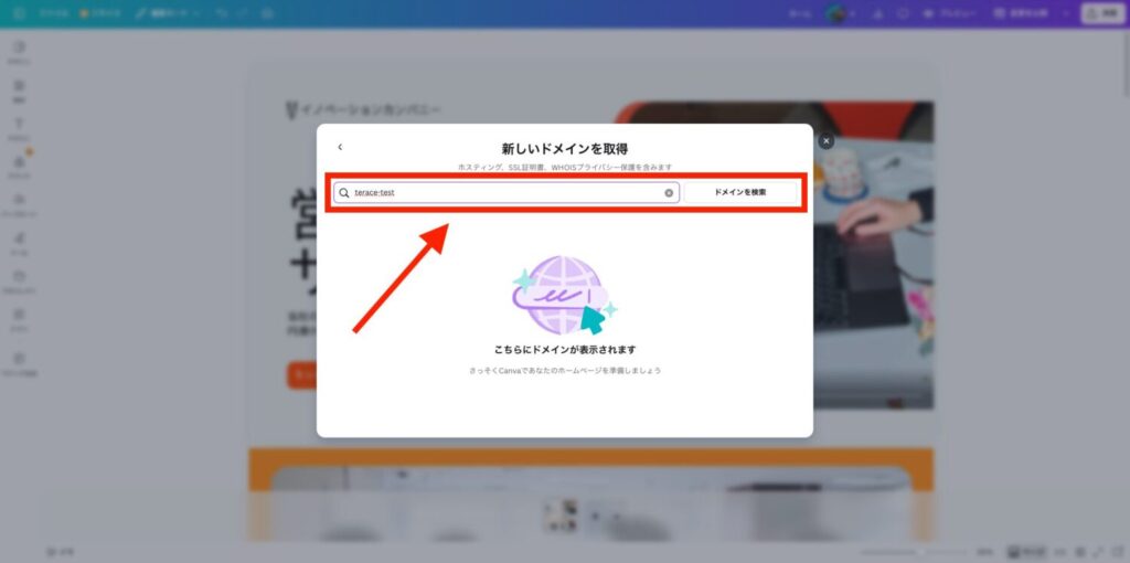 検索窓にドメインを入力して、「ドメインを検索」をクリックします。