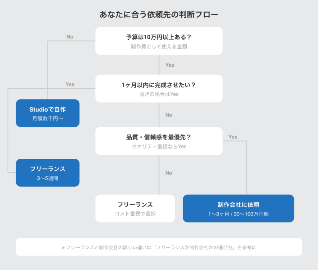 - 「品質・信頼感を最優先したい」:制作会社に依頼する