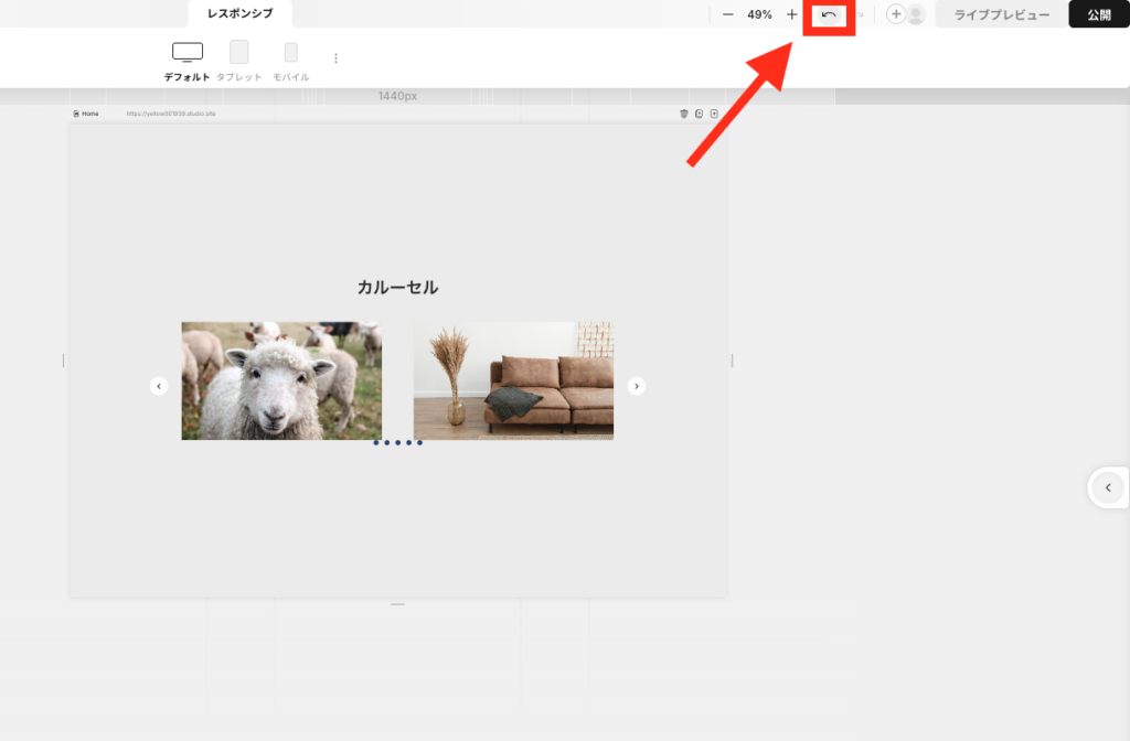バージョン管理機能を使うことで、Studioのサイトを適宜保存することができ、過去サイトに戻りたいときも「復元」のボタンを押すだけで復元できます。