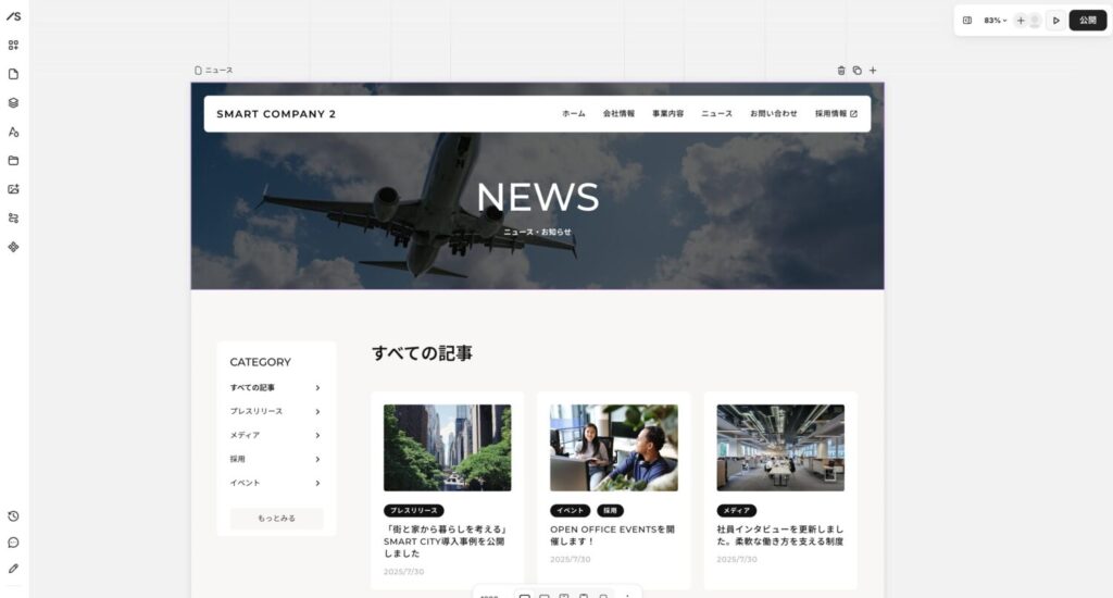 もちろんサイトを更新していなければ、公開サイトにCMSアイテムが表示されることもありません。