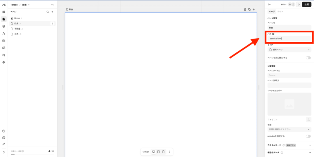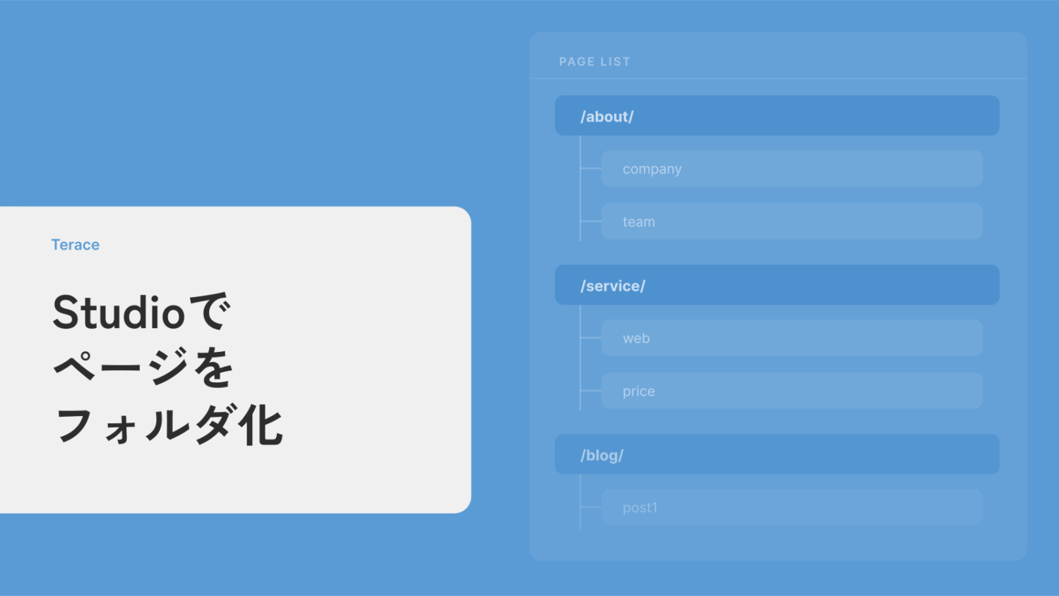 Studioには、ページパスに「/」を入れるだけで自動的にフォルダ分けできる機能があります。