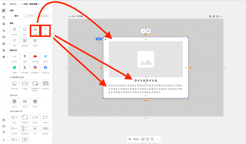 ②:CMSアイテムの追加