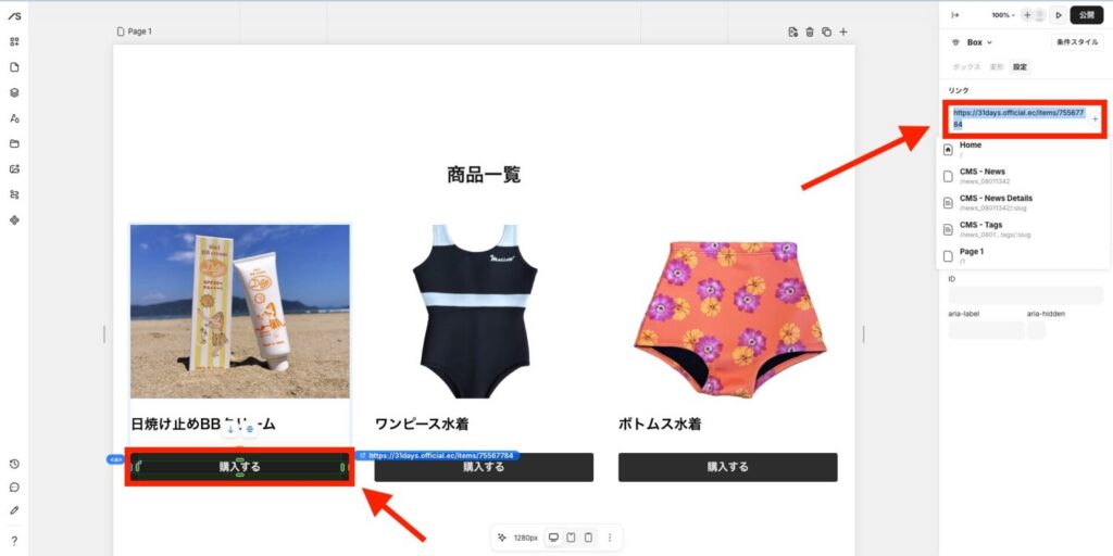 - Studioで作った購入ボタンをクリックする