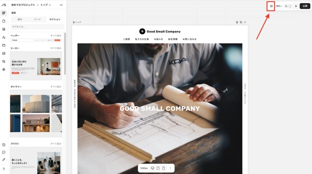 画面右上にある「右パネル」マークをクリックします。