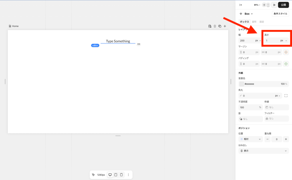 ボックスの縦幅が長すぎるので、「1px」に変更します。