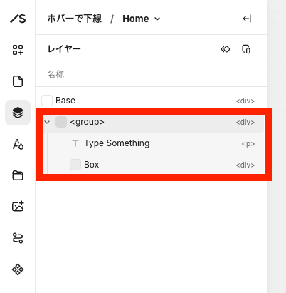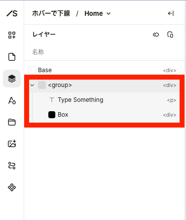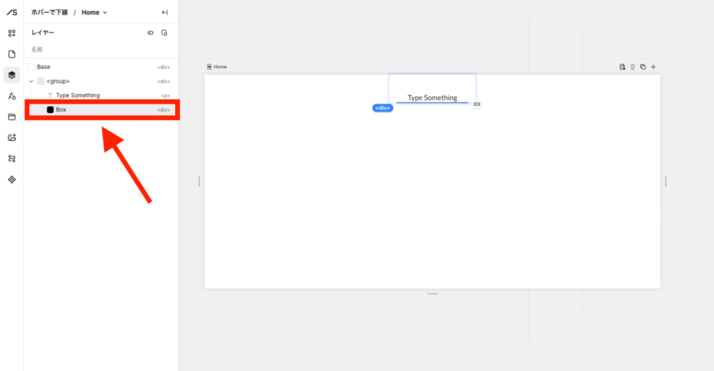 下線部分のみを「ボックス」と呼び、Type Something + 下線を「グループ」と呼びます!