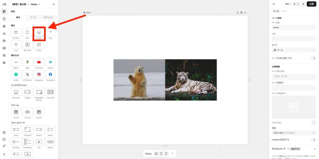 逆に、ホッキョクグマを上に重ねたいなら、ホッキョクグマの重ね順を1以上に設定します。