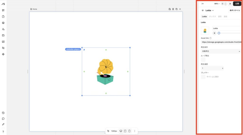 StudioにLottieを埋め込む方法は、下記のとおりです。