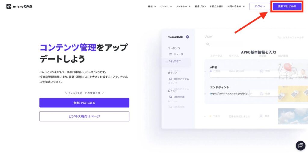 まずはmicroCMSの公式サイトにアクセスして、新規登録します。
