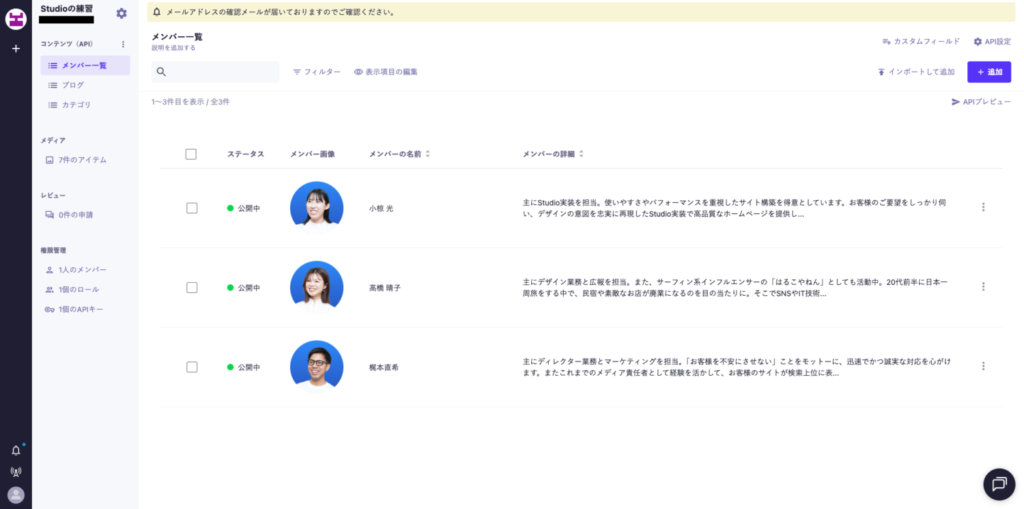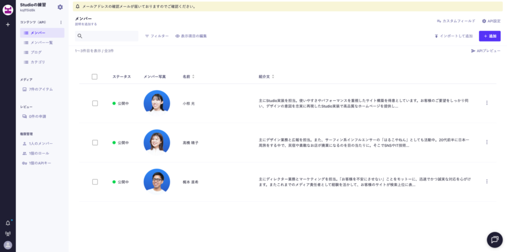 次は、microCMSに登録したメンバー情報を、Studioに反映していきます!