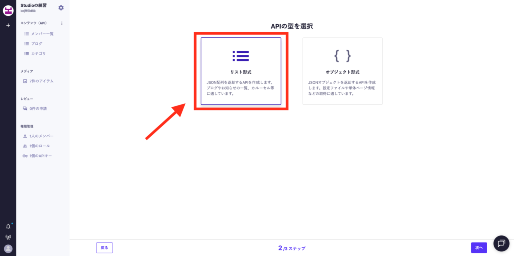 今回はメンバーを複数追加していきたいので、「リスト形式」を選択して、「次へ」をクリックします。