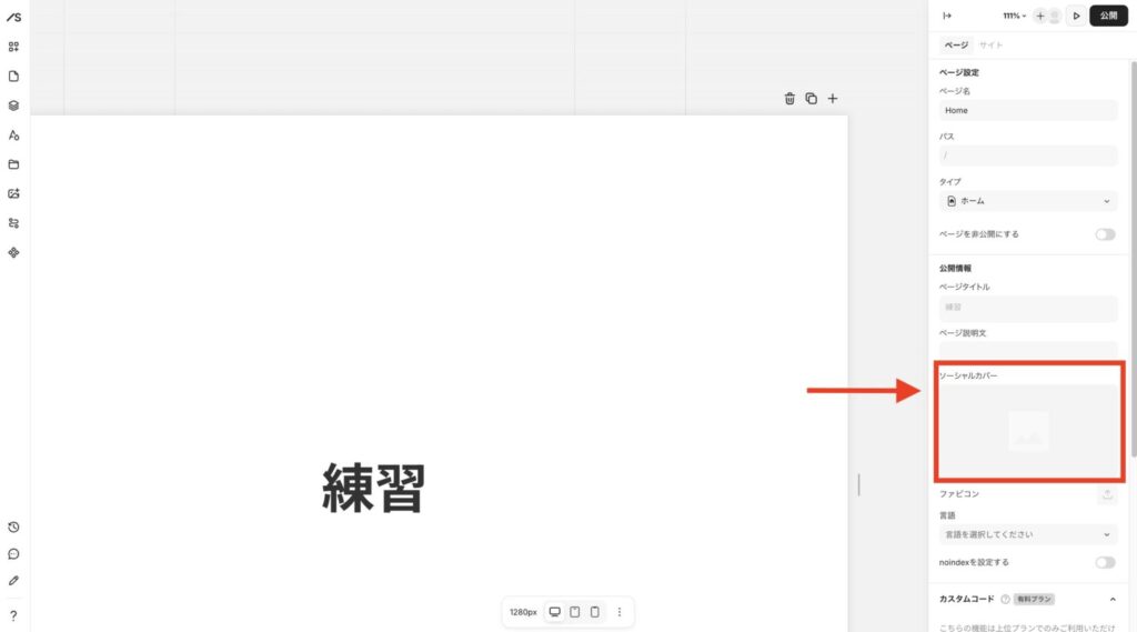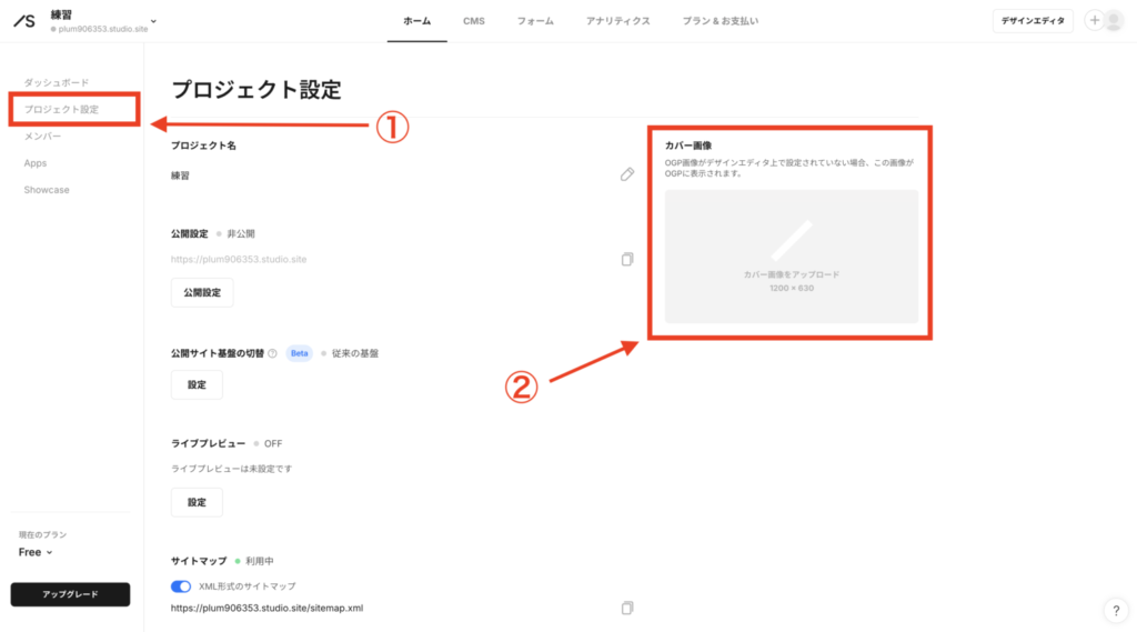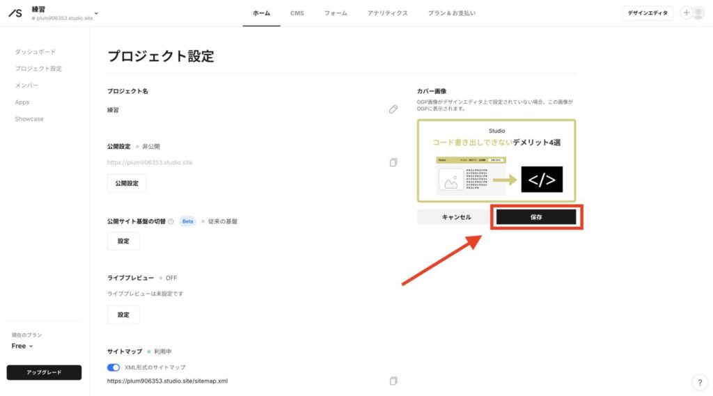 Studioのカバー画像(OGP)を設定する場所