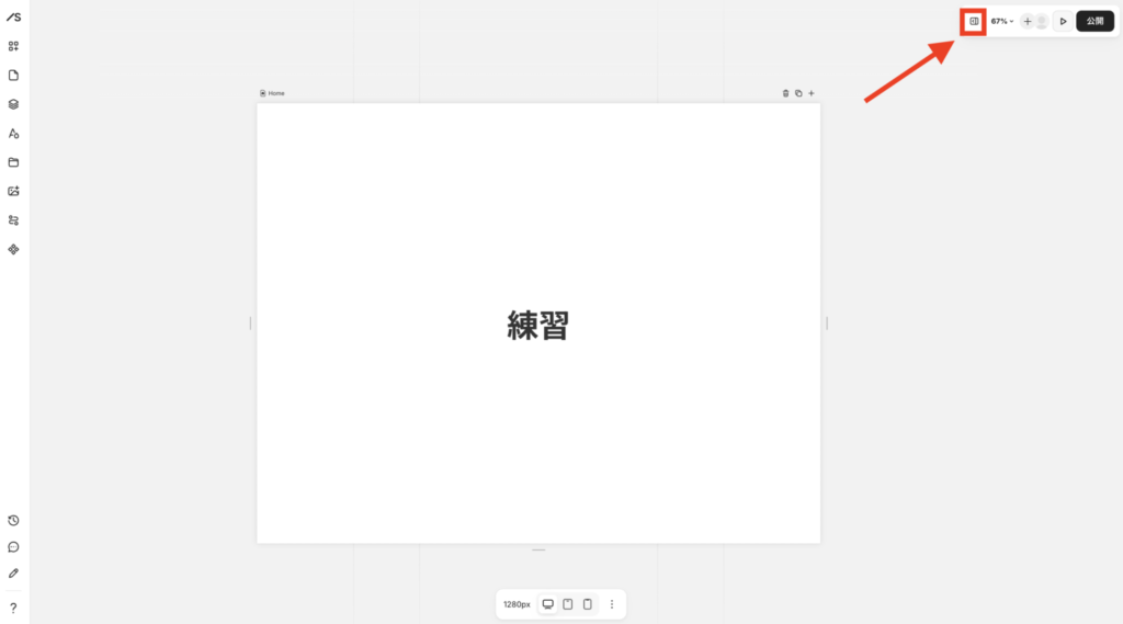②右パネルを開きます。