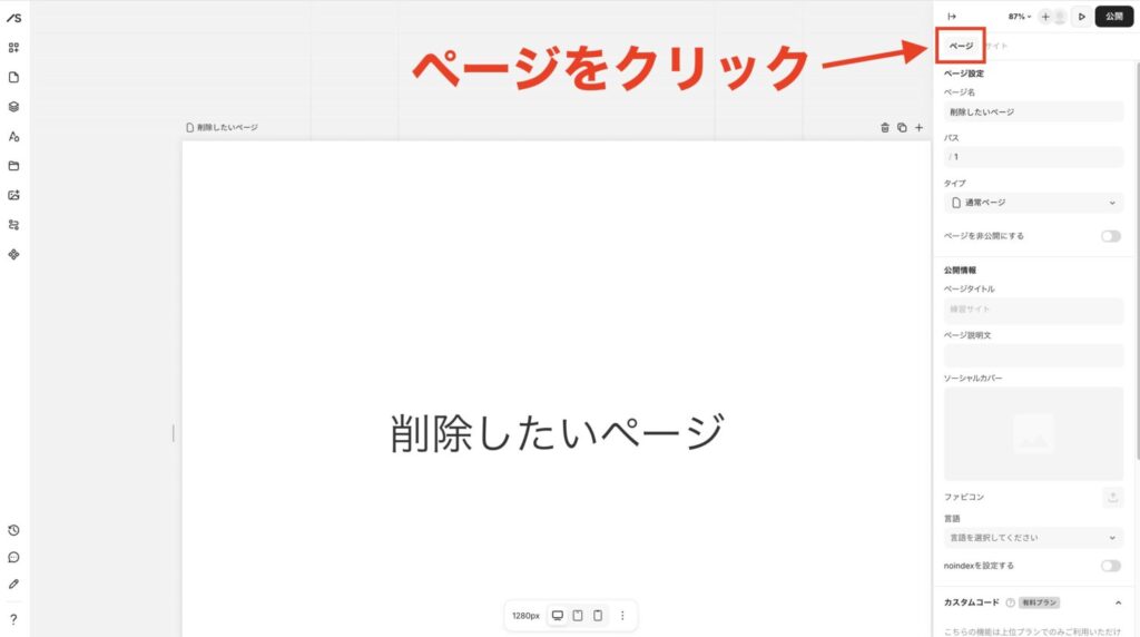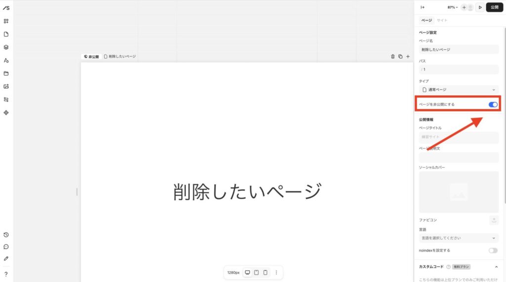 Studioの一部ページを非公開にする手順は、下記のとおりです。