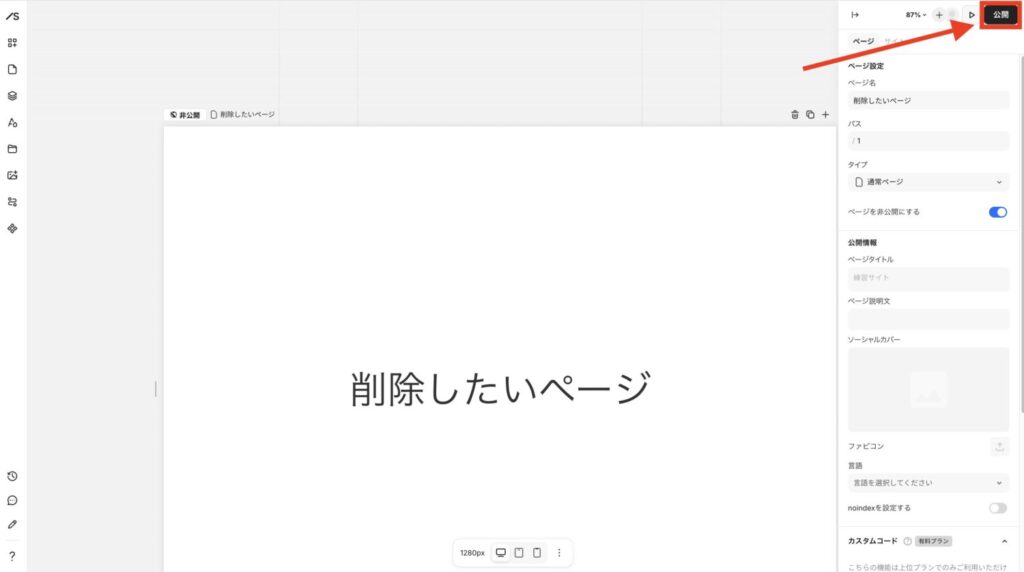 ページを非公開にするをクリック(青色)します。