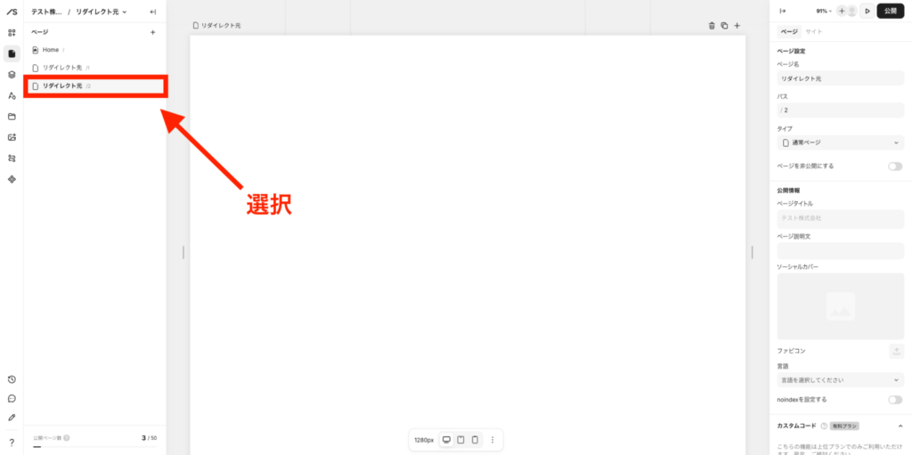 ①リダイレクト元のページを選択する