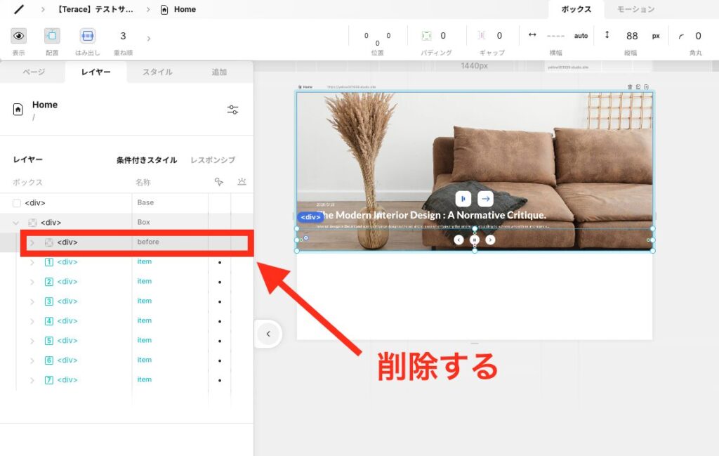 beforeの要素は必要ないので削除します。