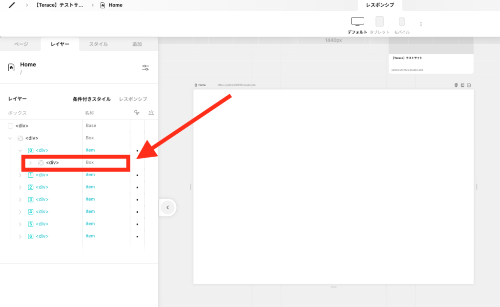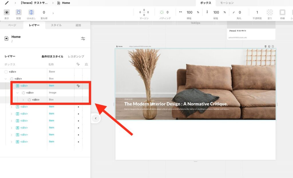 itemを囲っているBoxを選択して、右パネルを開きます。