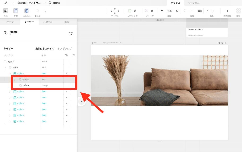 itemの要素を開いて、「Image」と「Box」が出てくるまで開き続けます。
