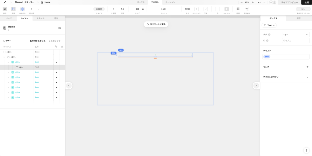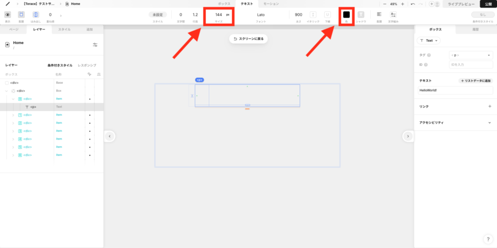 残ったTextを選択して、右パネルを開きます。